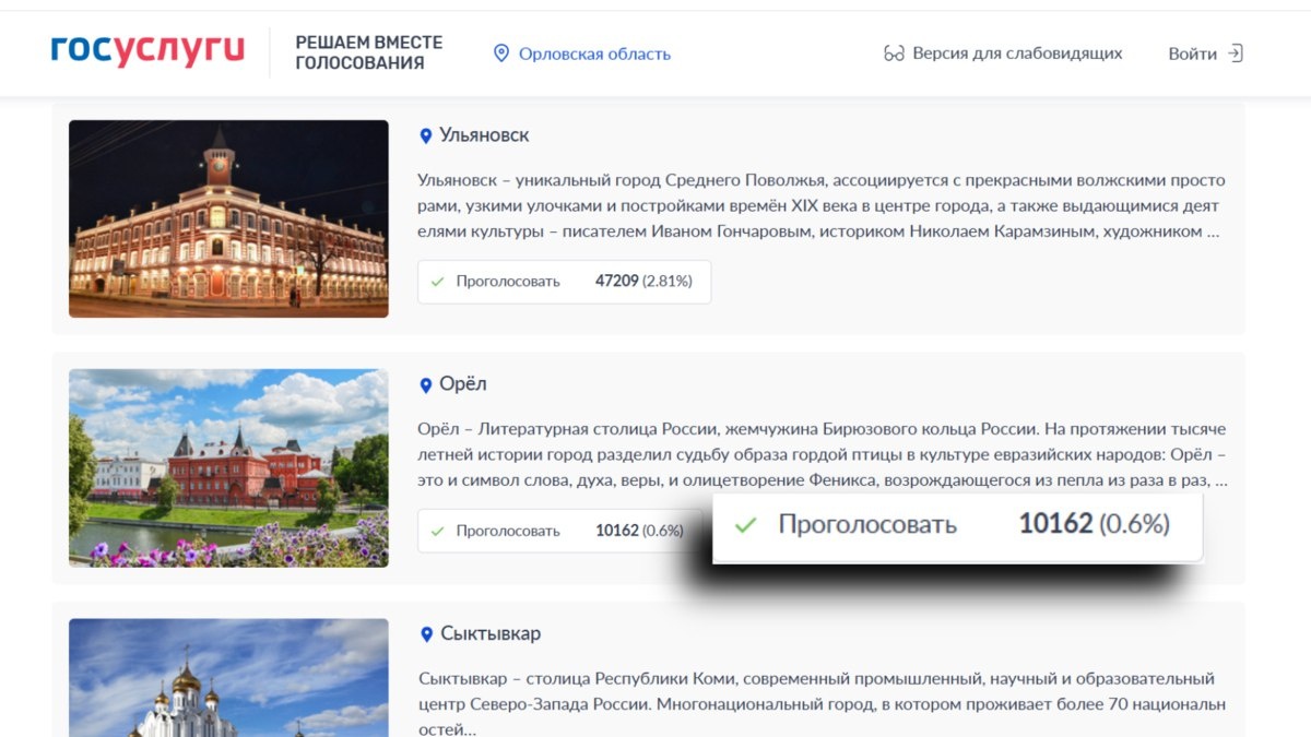 Орел значительно уступает в народном голосовании за «Культурную столицу года