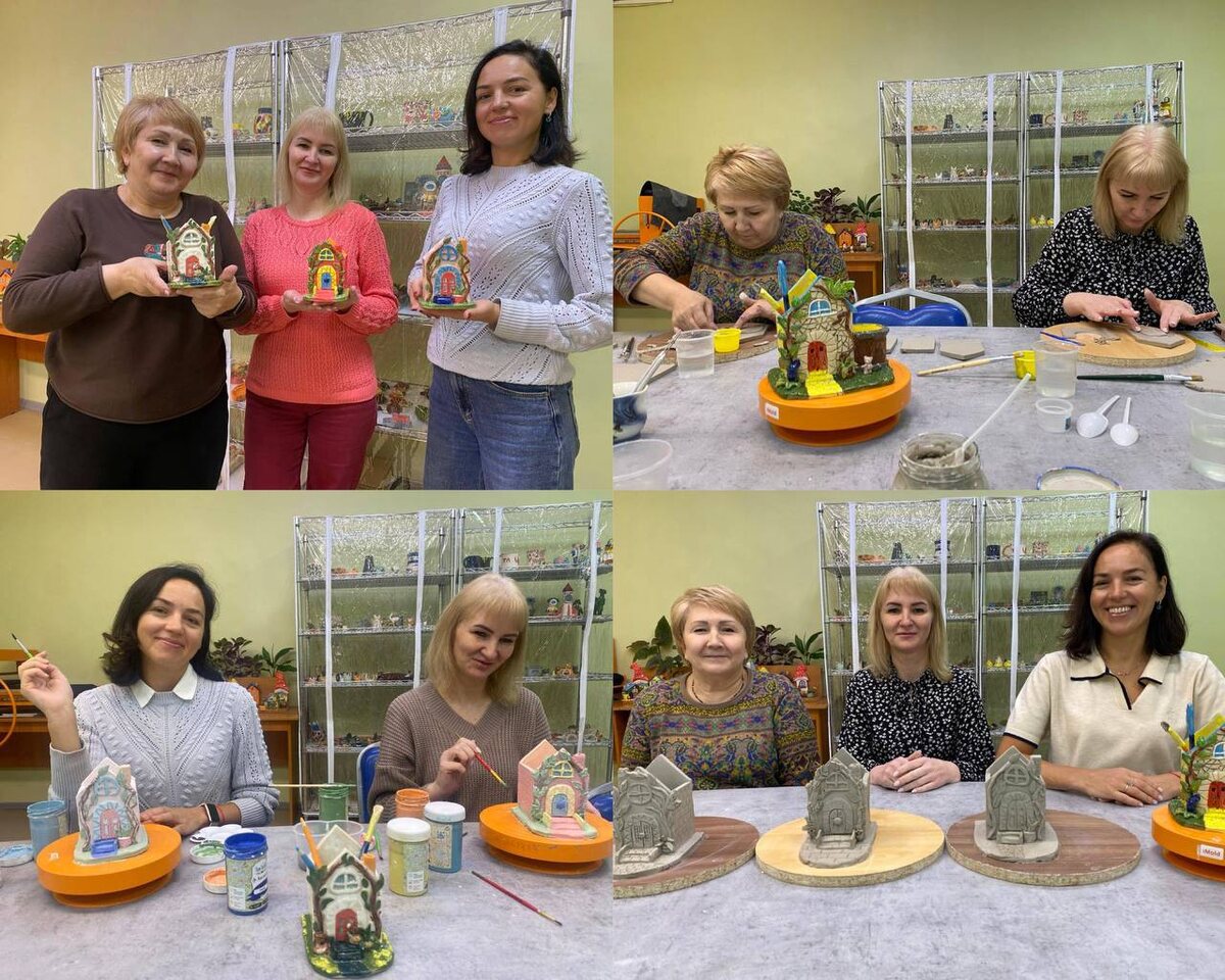 В преддверии новогодних праздников в нашей уютной гончарной мастерской собрались за одним столом те, кто обычно находится по разные стороны: молодые мамы — участницы проекта «Молодая семья» — и сотрудники Центра. Поводом стала творческая встреча, объединившая всех вокруг гончарного круга. Вместе, под руководством педагога, участники создавали оригинальные органайзеры из натуральной глины. Каждый выбрал себе форму — и многие остановились на фигурке в виде симпатичного глиняного домика. Процесс лепки прошел весело и непринужденно. Молодые мамы, уже имеющие опыт работы с глиной, охотно делились советами с сотрудниками, а те в ответ поддерживали их творческие идеи. Все участники оказались очень изобретательными: домики украсили живописными узорами и цветами, проявив фантазию и мастерство. После лепки изделия отправили на сушку и обжиг в специальной печи. Готовые расписанные керамические органайзеры теперь радуют своих владельцев. Они идеально подходят для аккуратного хранения канцелярии, у