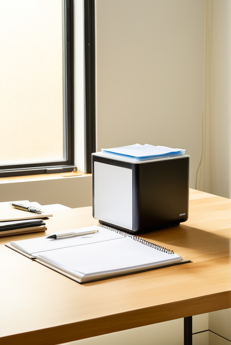 - Порядок: Бокс превращает листы для записей россыпью в аккуратный кубарик. Он работает как органайзер на рабочий стол, предотвращая беспорядок.