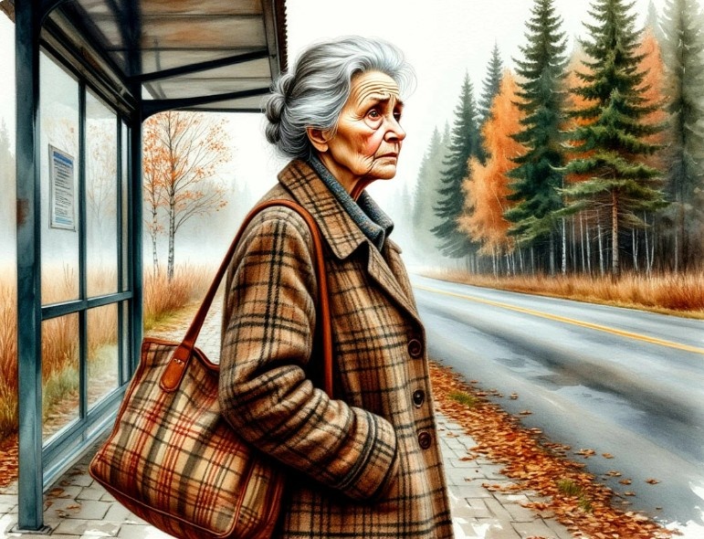 Дорога была пустынна. Игорь включил радио, потом выключил — мысли путались. На окраине города, у остановки, он заметил пожилую женщину. Она стояла, переминаясь с ноги на ногу, крепко прижимая к груди старомодную сумку.