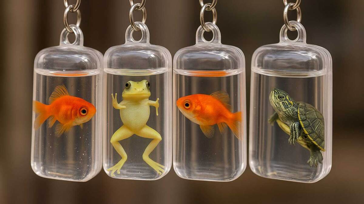 В Китае в качестве брелоков используют небольших животных, которых помещают в прозрачные контейнеры
