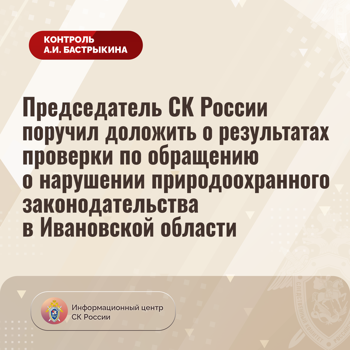 Председатель СК России поручил доложить о результатах проверки по обращению о нарушении природоохранного законодательства