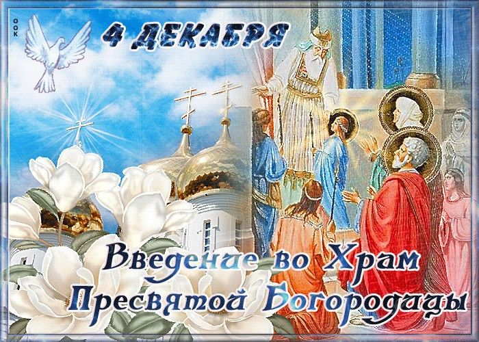 Для православных христиан 4 декабря по новому стилю — один из двунадесятых праздников, Введение во храм Пресвятой Богородицы. По церковному преданию, родители Марии, Иоаким и Анна, привели трехлетнюю девочку в Иерусалимский храм и посвятили ее Богу. Считается, что этот шаг стал частью подготовки к будущему Рождеству Христову.