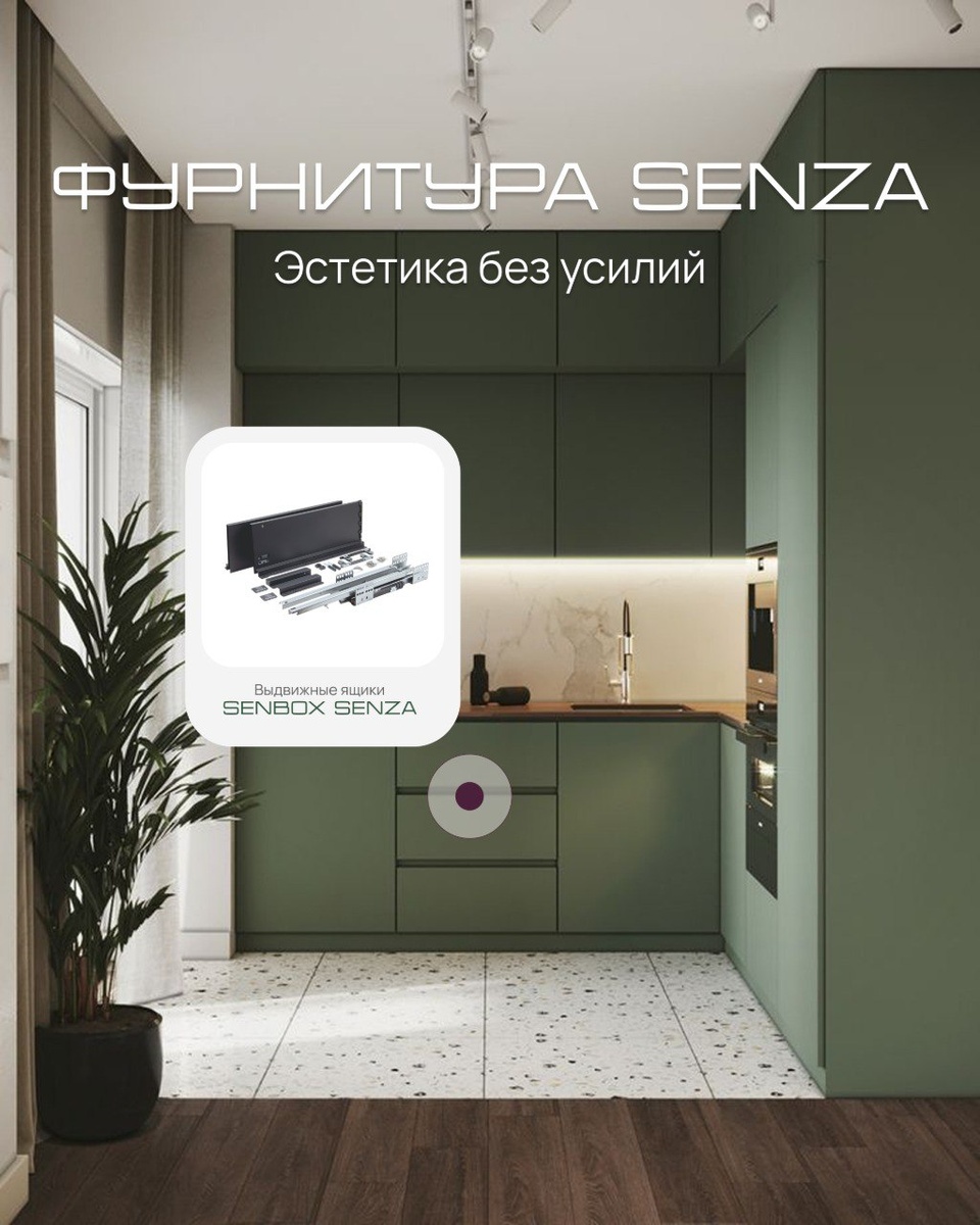 Фурнитура, которая работает на дизайн Настоящая красота — в деталях, которые не бросаются в глаза. Современные интерьеры всё чаще выбирают чистые линии и скрытую функциональность, где главную роль играет качественная фурнитура. Фурнитура SENZA создаёт эстетику без усилий: ✨ Направляющие COLPO SOFT скрываются полностью, сохраняя лаконичность фасада. ✨ Системы SENBOX подчёркивают геометрию кухни и добавляют глубины дизайну. ✨ Плавное движение ящиков и дверей делает использование мебели почти незаметным — как будто всё работает само. Когда техника становится частью эстетики — рождается настоящий комфорт. 👩🏻💻www.senzamf.ru 📲 +7 (920) 221-71-20 ✉️ sales@senzamf.ru