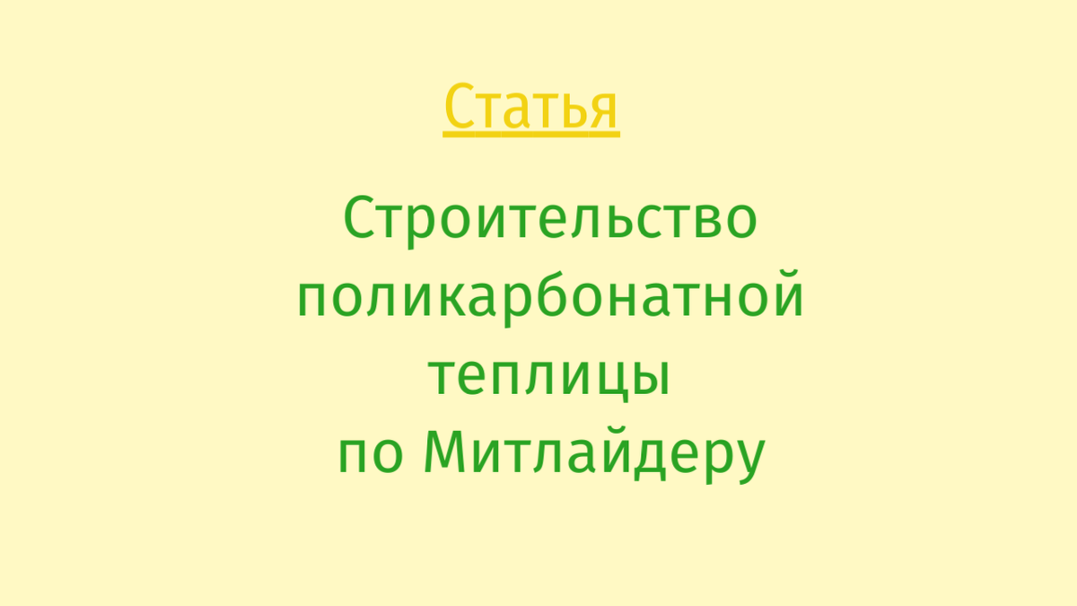 Строительство поликарбонатной теплицы по Митлайдеру