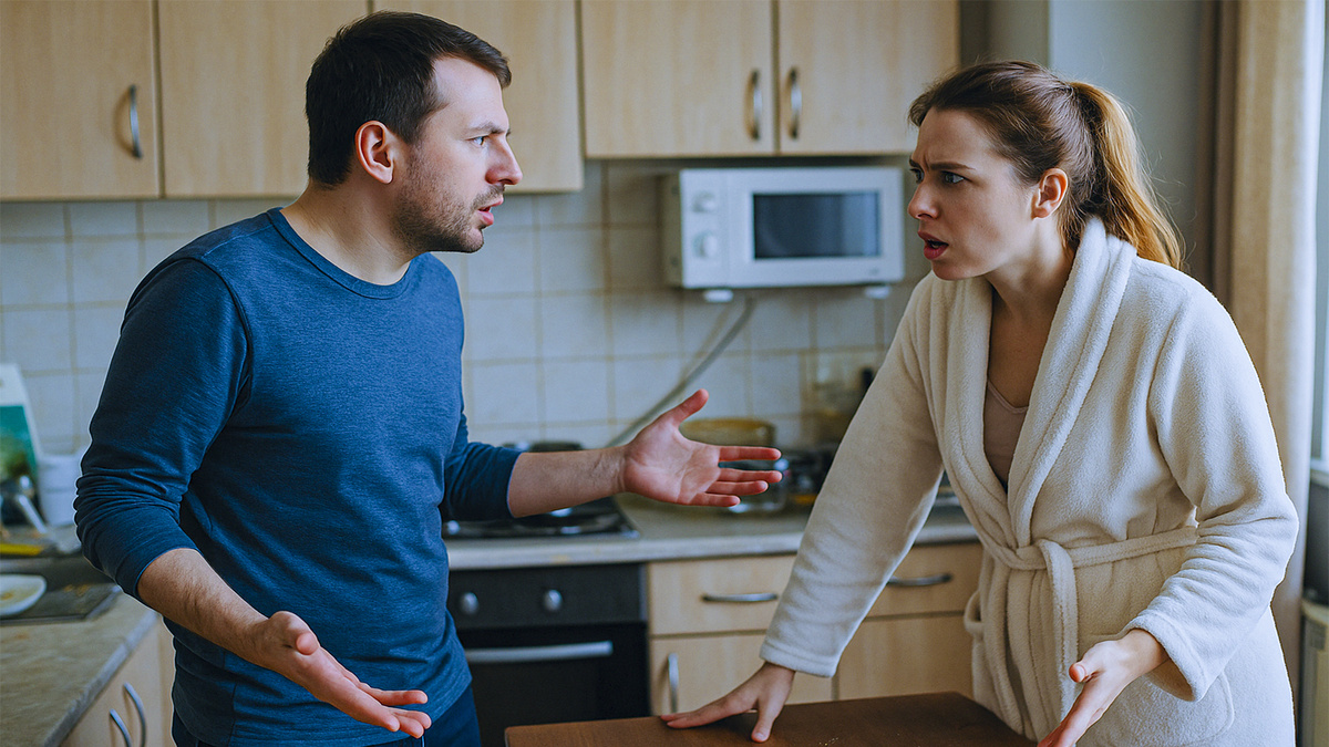 "Ты серьезно меня выгнала? Из-за посуды? Очнись. Я твой муж."
