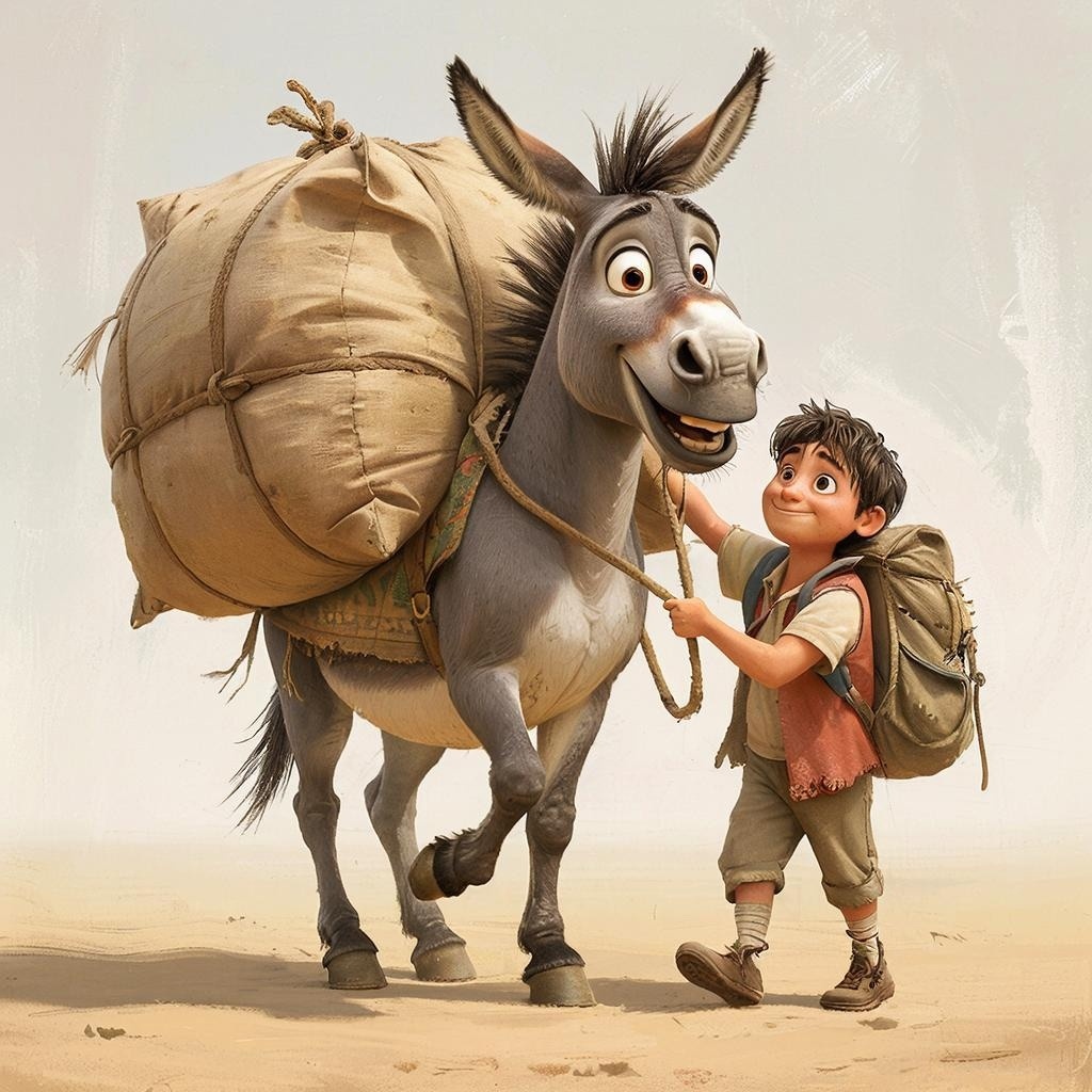Осёл весело махал хвостом, хотя осел от тяжести груза. "Может все-таки передохнём?", - спросил он своего случайного попутчика, - "а то того и глядишь передохнем от перегруза".