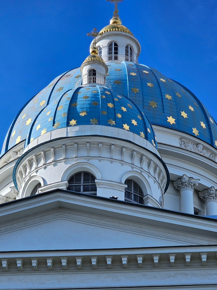 Собор Святой Живоначальной Троицы Лейб-Гвардии Измайловского полка. Вот это название! Но оно полностью соответствует прекрасному собору. Помню как в прошлом году я постоянно видела купол этого шикарного собора во время прогулок по городу. Он меня манил, но я так и не успела в него зайти. В этот приезд я дала себе обещание, что обязательно его посещу. В последний день в Петербурге я это сделала, вместе с моей родственницей. На меня купол собора Живоначальной Троицы произвёл такое же впечатление, как купол собора Санта-Мария-дель-Фьоре во Флоренции. Итак, немного истории... За образец собора был взят деревянный храм, который раньше стоял на этом месте. Закладку нового храма совершил митрополит Серафим 13 мая 1828 года. На торжестве присутствовали императрица Мария Фёдоровна и цесаревич Александр Николаевич. Строительство осуществлялось на личные средства императора Николая I и казённые деньги. Стоимость возведения собора составила 3 миллиона рублей! Представляете. А 25 мая 1835