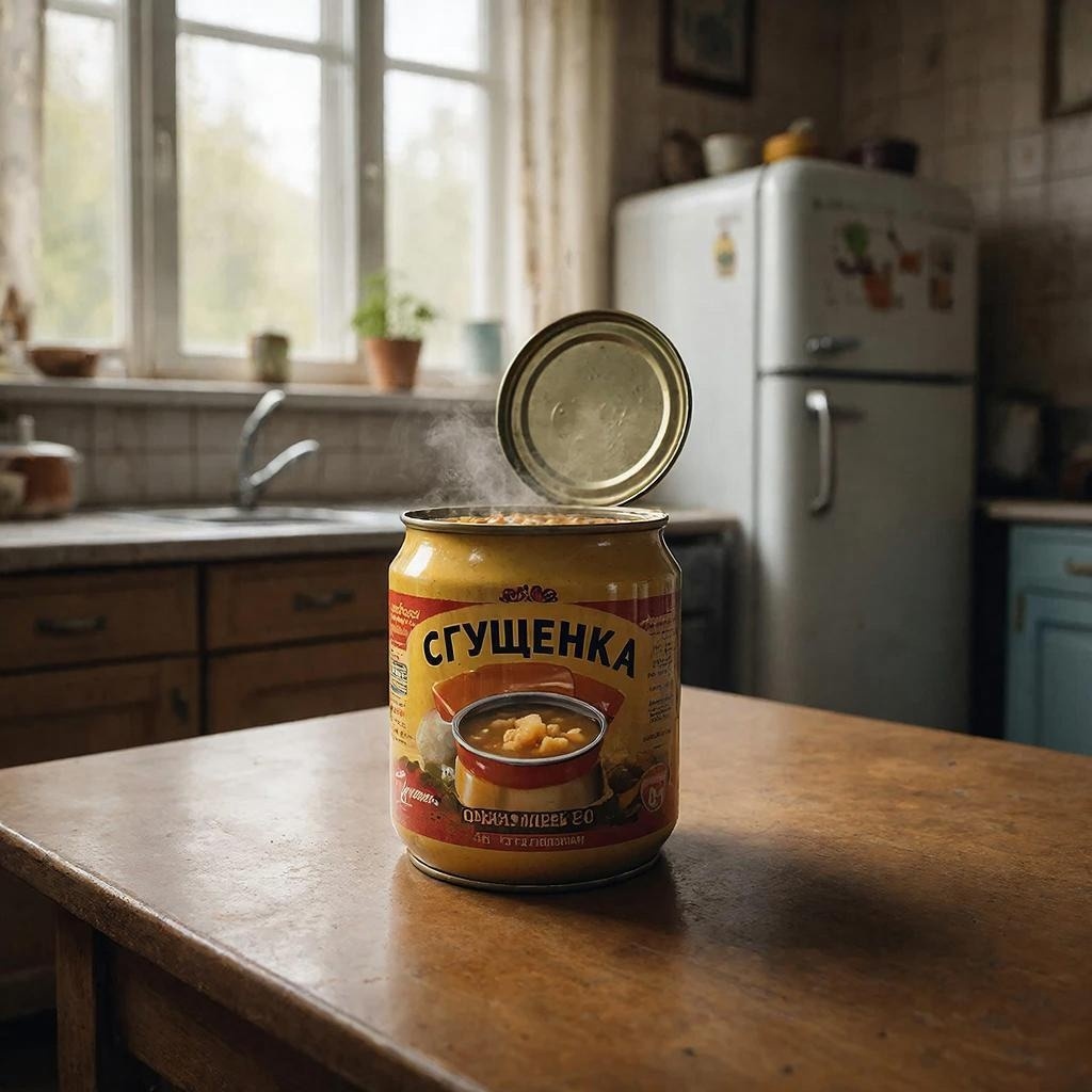 Схватил банку, но тут же одернул руку - банка была горячей. Заглянув вовнутрь, он завис. Вместо белой сладкой гу