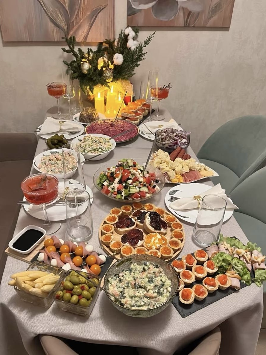 Скоро Новый год. Мы россияне думаем, чтобы приготовить, что купить вкусненькое для родных и близких. Безусловно, будем все дружно готовить оливье и сельдь под шубой. Для нас Новый год не праздник, если этих деликатесов не будет на столе. Эти блюда проверены временем и историей. Но вот иностранцы не оценят наших вкусностей. А мы и не обижаемся, лишь улыбаемся в ответ. Они ведь не знают о нашей истории, традициях, о том, откуда взяты были эти салаты. Я даже вот о чем подумала, если вы когда-нибудь захотите устроить друзьям-иностранцам культурный шок, не ведите их сразу в баню. Просто пригласите на праздничный стол. Гарантирую, их лица будут куда выразительнее. Вот, например, Оливье. Для нас — салат, для них — квинтэссенция загадочной русской души. «Вы кладете… вареную картошку? И колбасу? Вместе с солеными огурцами и сладким горошком? И всё это в майонезе?» — спрашивает наш знакомый из Лондона, в глазах у которого читается легкий ужас смешанный с научным интересом. Он пробует. Медлен