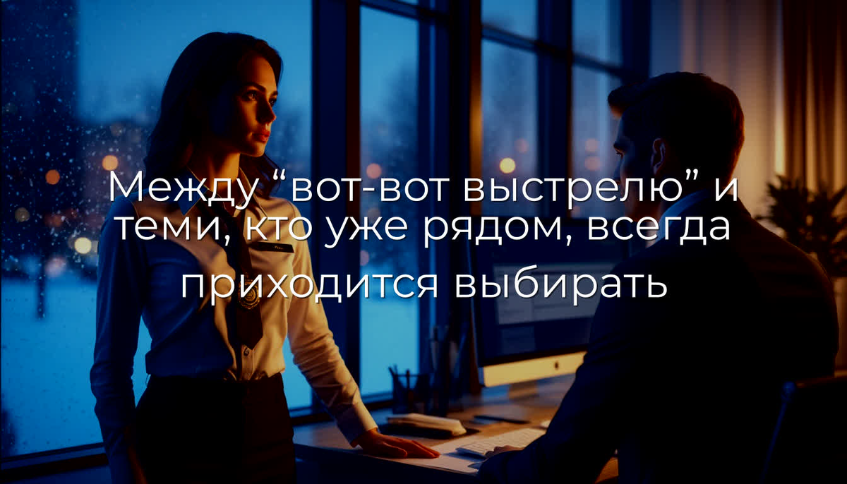 «Лена, — он повернулся к ней. — Я сейчас скажу, наверное, лишнее как руководитель. Но как человек… Ты имеешь право выбирать, рядом с кем тебе жить. Не потому что кто‑то лучше или хуже. А потому что тебе нужен не "вот‑вот выстрелю", а тот, кто уже сейчас рядом. Не в теории, не в обещаниях. Сейчас».