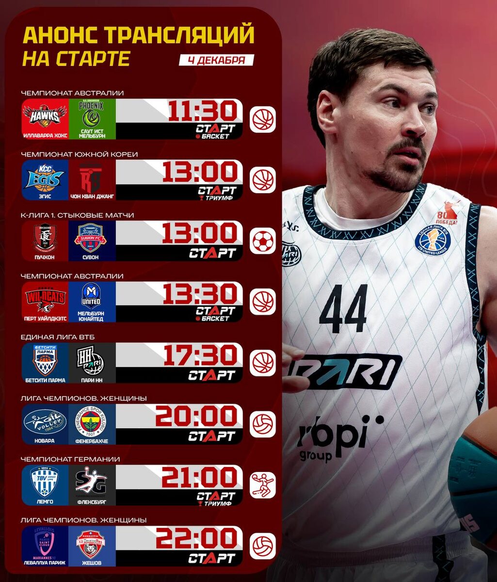 💥🔝 Четверг и новые трансляции на ТВ СТАРТ Сегодня покажем в нашем эфире и футбол, и баскет, и волейбол, и даже гандбол — выбирайте подходящие для вас матчи и залетайте на телеканалы «Старт» и TVSTART.RU✌️ UPD: Матч «Пучхон» — «Сувон» перенесен из-за погодных условий. 🛒 Наше приложение в Google Play 💙 Наше приложение в RuStore 🛒 Наше приложение в App Store