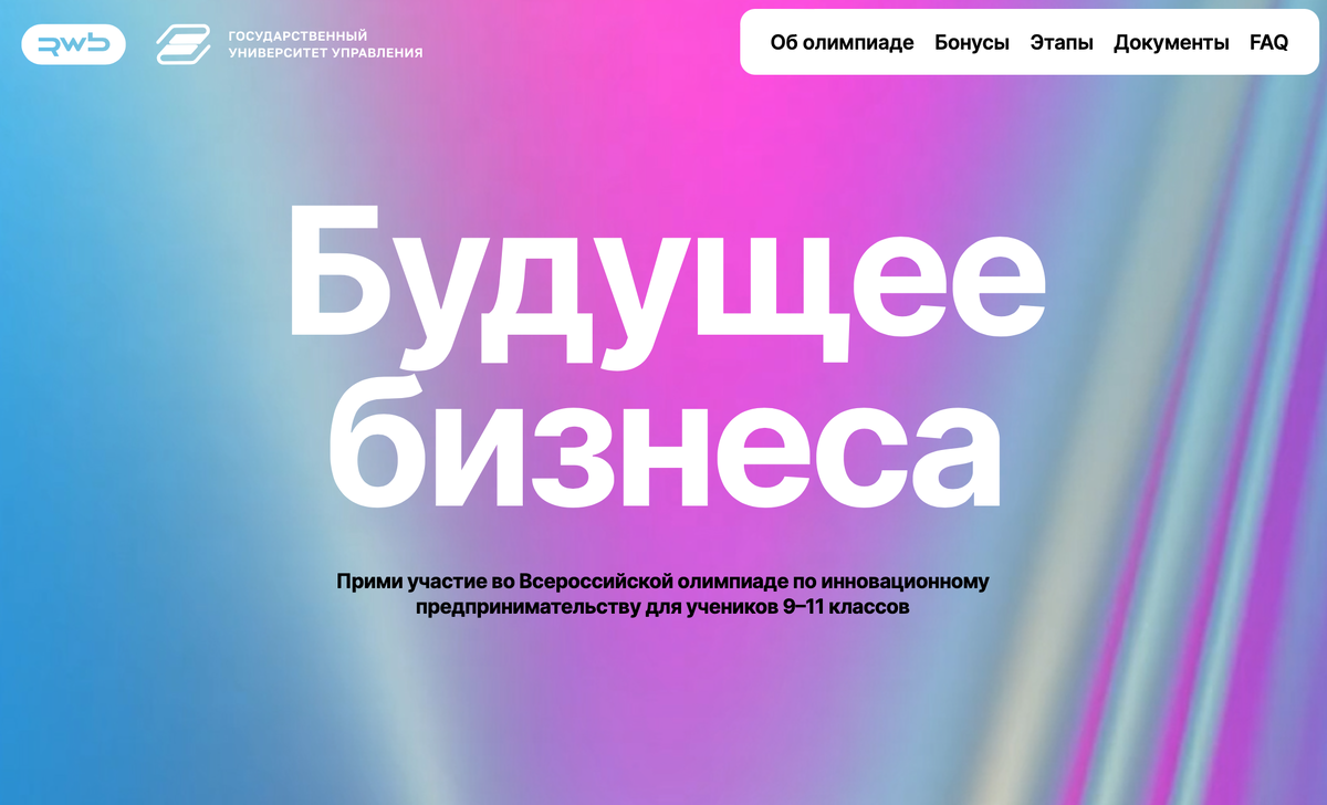 Начался отборочный этап Всероссийской олимпиады по инновационному предпринимательству «Будущее бизнеса» для школьников 9–11 классов и студентов 1–2 курса колледжей, которые интересуются экономикой, менеджментом, технологиями и инновациями. Программа разработана при поддержке Государственного университета управления и экспертов компании РВБ (Wildberries & Russ). Междисциплинарная Олимпиада охватывает комплекс общеобразовательных предметов: информатику, экономику, обществознание и английский язык, а также включает дополнительные направления: финансовую и управленческую грамотность, основы публичных выступлений и проектное управление. Организаторы подготовили для участников предпринимательские кейсы и задания от ведущих экспертов РВБ и преподавателей ГУУ. В награду финалисты получат сертификаты, подарки от Wildberries & Russ, карьерные консультации и дополнительные баллы для поступления в Первый управленческий. «Александровское коммерческое училище, на базе которого позже основали ГУУ, г