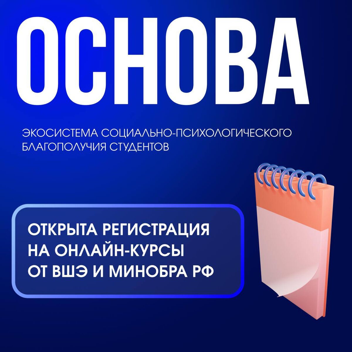 ⚡Минобрнауки РФ совместно с Высшей школой экономики запускают новый проект «Основа»! Проект направлен на психологическое благополучие студентов. 👉На данном этапе вам уже доступны бесплатные онлайн-курсы: ✅«Учеба без стресса» — курс для тех, кто мечтает учиться легко. ✅ «Социально-ответственное лидерство» — для тех, кто хочет вести за собой, оставаясь искренним и чутким. ✅ «Искусство заботы» — для тех, кто хочет научиться по-настоящему быть рядом с другими, сохраняя человечность. Каждый курс — это приглашение быть чуть мягче к себе, к собственному ритму, к своим и чужим эмоциям. Без давления и требований «сразу стать идеальным», только мягкая поддержка. Все, что нужно сделать — это зарегистрировать личный кабинет на сайте, и курсы твои! 🔗Твой курс уже ждет тебя здесь: osnova.hse.ru/osnovacourse Если ты учишься в Колледже РГСУ, сразу после регистрации заполни короткую форму! У проекта есть социальные сети: 😄ВКонтакте 😌Телеграм