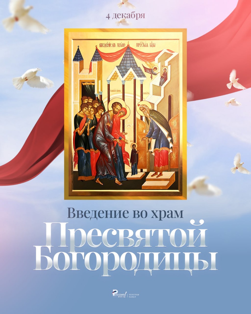 Сегодня православные христиане отмечают Введение во храм Пресвятой Богородицы В этот день вспоминается одно из важнейших событий в жизни Девы Марии — приведение ее родителями в Иерусалимский храм для служения Богу. Праздник учит нас вере и благоговению. Подобно тому как трехлетняя Мария поднялась по ступеням храма, каждый человек начинает свой духовный путь с маленького шага, сделанного с чистым сердцем. Пусть этот праздник принесет нам свет и умиротворение, укрепит наши духовные силы. С праздником! ✅ «Россия — это я!» в MAX