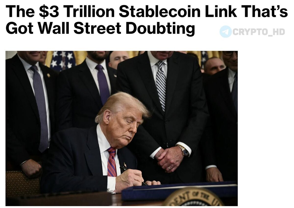 π Π£ΠΎΠ»Π»-ΡΡΡΠΈΡ ΡΠΎΠΌΠ½Π΅Π²Π°Π΅ΡΡΡ Π² Π·Π°ΠΊΠΎΠ½Π΅ GENIUS (Bloomberg) β€ ΠΠΈΠ½ΠΈΡΡΡ ΡΠΈΠ½Π°Π½ΡΠΎΠ² Π‘Π¨Π ΠΏΡΠΎΠ³Π½ΠΎΠ·ΠΈΡΡΠ΅Ρ ΡΠΎΡΡ ΠΊΠ°ΠΏΠΈΡΠ°Π»ΠΈΠ·Π°ΡΠΈΠΈ ΡΡΠ΅ΠΉΠ±Π»ΠΊΠΎΠΈΠ½ΠΎΠ² Π΄ΠΎ $3t ΠΊ 2030 Π³ΠΎΠ΄Ρ. Π‘Π΅ΠΉΡΠ°Ρ ~ $300b. β€ ΠΠΌΠΈΡΠ΅Π½ΡΡ ΡΠΆΠ΅ Π²Π»Π°Π΄Π΅ΡΡ Π³ΠΎΡ. ΠΎΠ±Π»ΠΈΠ³Π°ΡΠΈΡΠΌΠΈ Π½Π° $125b, ΠΈ ΠΏΠΎΠ΄ Π½ΠΎΠ²ΡΠΌ ΡΠ΅Π³ΡΠ»ΠΈΡΠΎΠ²Π°Π½ΠΈΠ΅ΠΌ ΡΡΠ° ΡΠΈΡΡΠ° ΡΠΎΡΠ½ΠΎ Π²ΡΡΠ°ΡΡΠ΅Ρ. β€ ΠΡΠΈ ΡΡΠΎΠΌ Π°Π½Π°Π»ΠΈΡΠΈΠΊΠΈ JPMorgan, Deutsche Bank ΠΈ Goldman Sachs ΡΠΎΠΌΠ½Π΅Π²Π°ΡΡΡΡ: β’ Π Π°Π½ΠΎ ΠΎΠΆΠΈΠ΄Π°ΡΡ, ΡΡΠΎ ΡΡΠ΅ΠΉΠ±Π»ΠΊΠΎΠΈΠ½Ρ ΡΠ΅Π·ΠΊΠΎ Π½Π°ΡΠ°ΡΡΡΡ ΡΠΏΡΠΎΡ Π½Π° Π΄ΠΎΠ»Π»Π°Ρ ΠΈ T-Bills. β’ ΠΠ°ΠΏΡΠ΅Ρ Π½Π° Π½Π°ΡΠΈΡΠ»Π΅Π½ΠΈΠ΅ ΠΏΡΠΎΡΠ΅Π½ΡΠΎΠ² Π΄Π΅Π»Π°Π΅Ρ ΡΡΠ΅ΠΉΠ±Π»ΠΊΠΎΠΈΠ½Ρ ΠΌΠ΅Π½Π΅Π΅ ΠΏΡΠΈΠ²Π»Π΅ΠΊΠ°ΡΠ΅Π»ΡΠ½ΡΠΌΠΈ Π΄Π»Ρ ΠΈΠ½Π²Π΅ΡΡΠΎΡΠΎΠ². β’ Π‘Π»Π΅Π΄ΠΎΠ²Π°ΡΠ΅Π»ΡΠ½ΠΎ Π½Π΅ Π±ΡΠ΄Π΅Ρ ΠΌΠ°ΡΡΠΎΠ²ΠΎΠ³ΠΎ ΠΏΠ΅ΡΠ΅ΡΠΎΠΊΠ° Π΄Π΅Π½Π΅Π³ ΠΈΠ· Π΄Π΅ΠΏΠΎΠ·ΠΈΡΠΎΠ² ΠΈ ΡΠΎΠ½Π΄ΠΎΠ² Π΄Π΅Π½Π΅ΠΆΠ½ΠΎΠ³ΠΎ ΡΡΠ½ΠΊΠ°. β’ Π ΠΎΡΡ ΡΠΏΡΠΎΡΠ° Π½Π° ΠΊΠ°Π·Π½Π°ΡΠ΅ΠΉΡΠΊΠΈΠ΅ Π²Π΅ΠΊΡΠ΅Π»Ρ ΠΌΠΎΠΆΠ΅Ρ ΠΎΠΊΠ°Π·Π°ΡΡΡΡ ΠΏΠ΅ΡΠ΅ΠΎΡΠ΅Π½Π΅Π½Π½ΡΠΌ β€ ΠΠ°ΠΆΠ΅ ΠΏΡΠΈ ΡΠΈΠ»ΡΠ½ΠΎΠΌ ΡΠΎΡΡΠ΅ ΡΡΠ΅ΠΉΠ±Π»ΠΊΠΎΠΈΠ½Ρ, ΠΏΠΎ ΠΌΠ½Π΅Π½ΠΈΡ Π°Π½Π°Π»ΠΈΡΠΈΠΊΠΎΠ², Π² ΠΎΡΠ½ΠΎΠ²Π½ΠΎΠΌ Π±ΡΠ΄ΡΡ ΠΏΠ΅ΡΠ΅ΡΠ°ΡΠΏΡΠ΅Π΄Π΅Π»ΡΡΡ ΡΠΆΠ΅ ΡΡΡΠ΅ΡΡΠ²ΡΡΡΠΈΠ΅ Π΄ΠΎΠ»Π»Π°ΡΡ, Π° Π½Π΅ ΡΠΎΠ·Π΄Π°Π²Π°ΡΡ Π½ΠΎΠ²ΡΠΉ ΡΠΏΡΠΎΡ Π½Π° Π³ΠΎΡ. ΠΎΠ±Π»ΠΈΠ³Π°ΡΠΈΠΈ. ΠΠ°ΠΊΠΎΠ½ ΠΏΠΎΠΌΠΎΠΆΠ΅Ρ ΠΈΠ½Π΄ΡΡΡΡΠΈΠΈ, Π½ΠΎ ΠΎΠ±Π΅ΡΠ°Π½Π½ΠΎΠ³ΠΎ Β«ΠΌΠ½ΠΎΠ³ΠΎΡΡΠΈΠ»Π»ΠΈΠΎΠ½Π½ΠΎΠ³ΠΎ ΡΡΡΠ΅ΠΊΡΠ°Β» ΠΌΠΎΠΆΠ΅Ρ Π½Π΅ ΡΠ»ΡΡΠΈΡΡΡΡ. Π Π°Π½Π΅Π΅: Π·Π°ΠΊΠΎΠ½ GENIUS Crypto Headlines