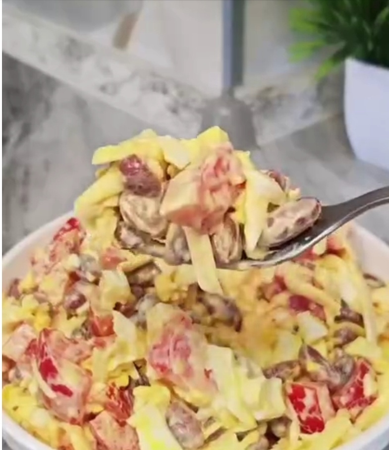 Приветствую всех любителей вкусной еды и простых рецептов 😋 Сегодня я поделюсь с вами рецептом потрясающего салата, который идеально подойдет как для семейного ужина, так и для праздничного стола. Этот салат не только очень вкусный, но еще и питательный, а готовится он буквально за считанные минуты! 🔸 Что нам понадобится? Вот список ингредиентов, которые понадобятся вам для приготовления этого чудесного блюда: ✨ Красная фасоль консервированная — 1 баночка ✨ Сыр твёрдый — около 100 граммов ✨ Яйца куриные вареные — 4 штуки ✨ Чеснок свежий — пару зубчиков ✨ Майонез или сметана — примерно две столовые ложки ✨ Помидорчики свежие — два-три средних помидора ✨ Немножко соли по вашему вкусу Все ингредиенты можно найти практически в любом магазине, поэтому приготовление такого салата будет быстрым и лёгким даже для начинающих кулинаров 😊 💥 Как готовить наш чудо-салат? ✂️ Шаг первый: Открываем банку с красной фасолью и аккуратно сливаем жидкость. Фасоль промываем под холодной водой и даем