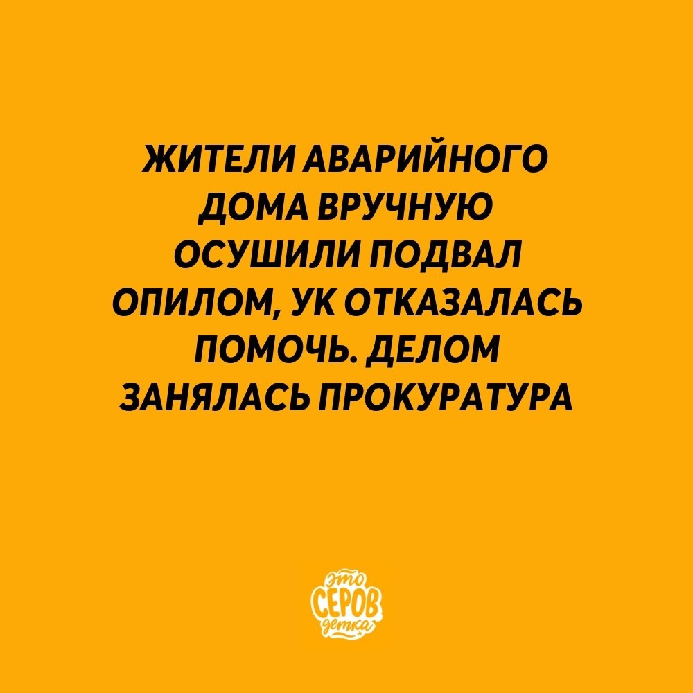 ❗️ Жители аварийного дома в Серове вручную осушили подвал опилом, УК отказалась помочь. Делом занялась прокуратура В Серове жители аварийного дома №9 на улице Ключевой самостоятельно борются с затоплением подвала фекальными водами. В конце ноября они на собственные средства закупили две машины опила и вручную засыпали им затопленные помещения, после чего управляющая компания «Градмаш» отказалась помочь с уборкой. По словам жителей, представители УК несколько раз переносили дату уборки, но так и не появились. Люди были вынуждены сами выносить отсыревший опил пластиковыми мешками и ведрами. При этом в подвале сохраняется зловонный запах, на полу остаются лужи, а через разбитые окна проникает холод. Ситуацией заинтересовались Серовская городская прокуратура и Госжилинспекция. Прокуратура начала проверку законности сроков расселения жителей из аварийного жилья и содержания общего имущества УК. В доме также обнаружены выбитые двери, тараканы, трещины в стенах и дыры в полу. Представител