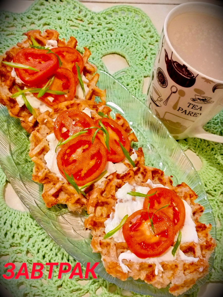 Сегодня утром я решила побаловать себя необычным завтраком — приготовила вафли из овсяных отрубей с ветчиной и сыром. Получилось очень вкусно и сытно! Для теста я взяла пару кружочков индюшиной ветчины, нарезала её мелкими кубиками, добавила около 30 граммов натёртого сыра, одно яйцо категории С1, две столовые ложки овсяных отрубей с горкой, ложку кукурузного крахмала и пару ложек йогурта. Всё тщательно перемешала и выпекала в своей мини-вафельнице. Она отлично справляется с задачей, хотя я подумываю о покупке более крупной модели — эту планирую оставить для дачи на лето. В итоге получилось три вафли, которые я решила дополнить творожным сыром, домашними помидорами (у меня ещё остались несколько не слишком красивых, но очень вкусных) и посыпала зелёным луком. К этому подала чашечку ароматного кофе с молоком — и утро сразу стало удачным! Завтрак получился не только вкусным, но и полезным, а главное — очень сытным. Это был мой первый опыт приготовления таких вафель, и я с увереннос