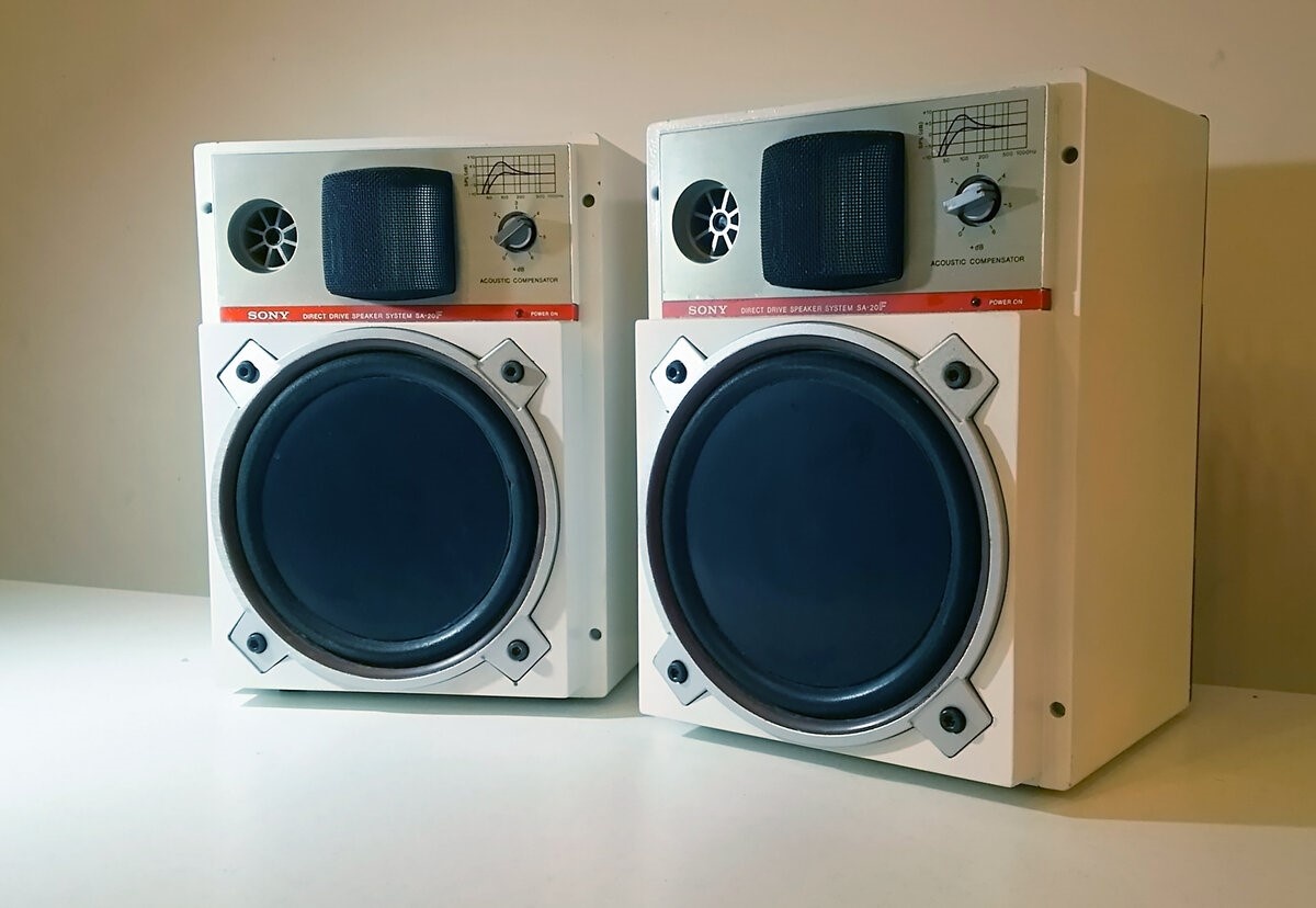 Эта пара активных колонок была разработана для легендарного стереокомплекса SONY "FALCON"✈️, достойного отдельной истории. Скажем честно, что FALCON оказался более редким и незаметным на рынке, даже, чем соневская серия Precise P7. Однако из этих двух комплектов особое внимание стоит уделить акустическим системам SA-20F или их упрощенной версии SA-10F. Вот уж где соневская команда разработчиков оторвалась по полной. Прежде всего эти АС с тремя высокотехнологичными элементами: ленточным твитером, системой охлаждения Heat-Pipe и коническим низкочастотным динамиком с плоской диафрагмой. Выпускались в двух версиях, вторая с индексом FB отличалась цветом: темно-графитовый вместо серебристого — чрезвычайно редкий (ниже на фото). Ленточный твитер изготовлен из пленочной мембраны, из чисто-сплавной алюминиевой фольги: легкая, но жесткая, с высокой допустимой мощностью и импедансом. Самым необычным решением стала система охлаждения магнитов. Теплоотводная трубка шла от центральной части