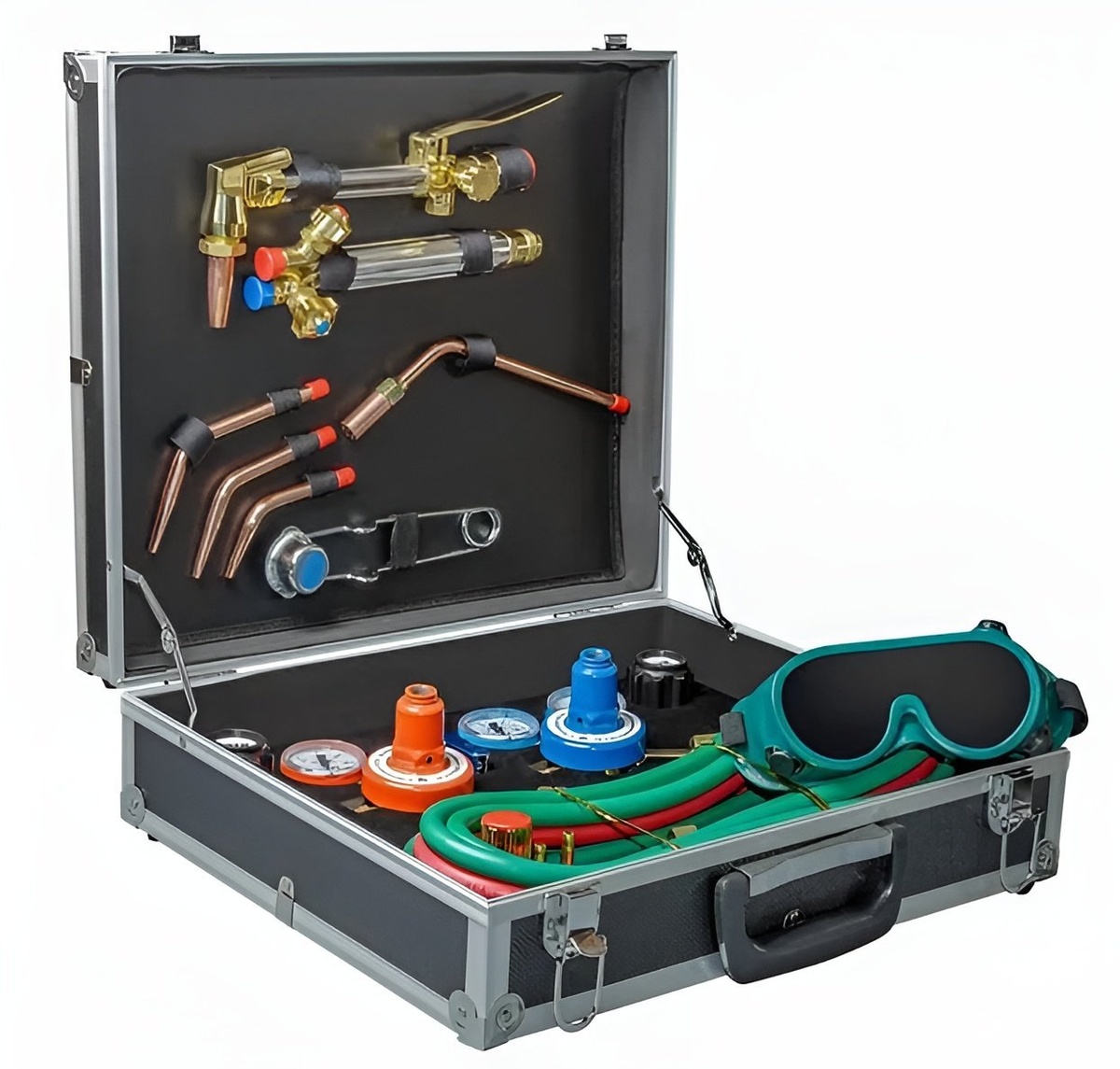 На рынке (не том, что "за углом», а «вообще» 😅) есть универсальные комплекты для газосварки, КГС. Рассчитаны «наборы» на обустройство полноценного рабочего места в полевых условиях: - раскрой металла любой толщины и почти с любой геометрией; - предварительный и сопутствующий нагрев металла при сварке и пайке; - сварка цветных и черных металлов, различных сталей; - пайка металлов (обычно твердыми припоями). Для этих задач применяют универсальные ацетилен или пропан. Это делает КГС удачным инструментом для жилищно-коммунальных, дорожных, сервисных служб, бригад по ремонту трубопроводов, для автосервисов, на строительных площадках. Комплект для газосварки состоит из горелок, резаков, сменных мундштуков и наконечников, редукторов под горючий газ и кислород, средств индивидуальной защиты, изделий для чистки и ремонта. Рукава с фитингами могут не входит в список. Комплектацию советуем подбирать под себя – рынок богат предложениями. Все компоненты упакованы в кейс, что делает КГС удобн