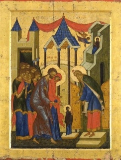 Днесь отмечаемы мы Введенье Святыя Девы в Божий храм, Торжественным богослуженьем, Открылся дивный праздник нам. Священник в храме Деву встретил, Она ступени все прошла, Господь избрал Ее, приметил, Чтоб Матерью Ему была. До той поры Она трудилась, При храме Божьем и жила, И Богу искренне молилась, Ему лишь верною была. Днесь Матерь Божью величаем, Вхожденье в храм Господень чтим, Свои колена преклоняем, Пред образом Ее святым. https://stihi.ru/2025/12/04/1613