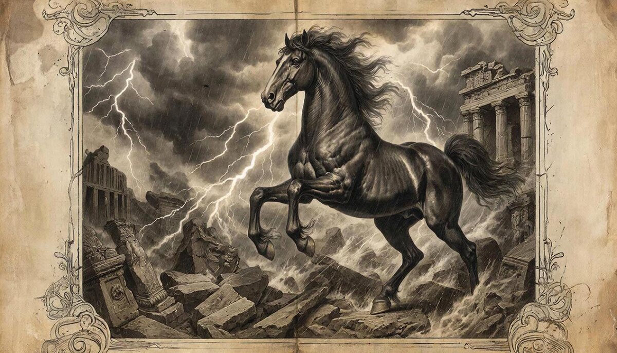 Некоторые считают, что именно отсюда берет начало сам миф о зловещем коне-призраке.