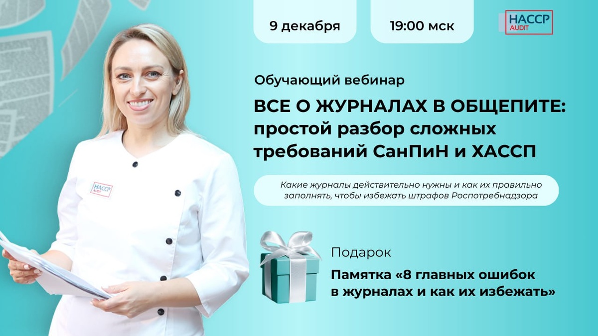 9 декабря, санитарный врач Ольга Огаркова (экс-инспектор Роспотребнадзора, 16 лет практики) проведёт 👉 Открытый вебинар и разберёт: