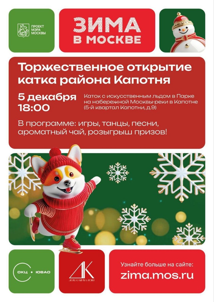 Торжественное открытие катка в Капотне! Культурный центр «Капотня» приглашает 05 декабря 2025 г. в 18:00 на грандиозное открытие главного катка района Капотня по адресу: 5-й квартал Капотни, 9. Программа: ❄- Зажигательный концерт, который подарит море позитивных эмоций. ❄- Веселые игры и конкурсы для детей и взрослых, где каждый сможет проявить себя. ❄- Интригующий розыгрыш призов, где удача улыбнется самым везучим! ❄- Дискотека. А чтобы согреться и зарядиться энергией - ароматный горячий чай. Новость прислал наш подписчик @konak_konak Подписывайтесь на канал "Движуха в Марьино"!