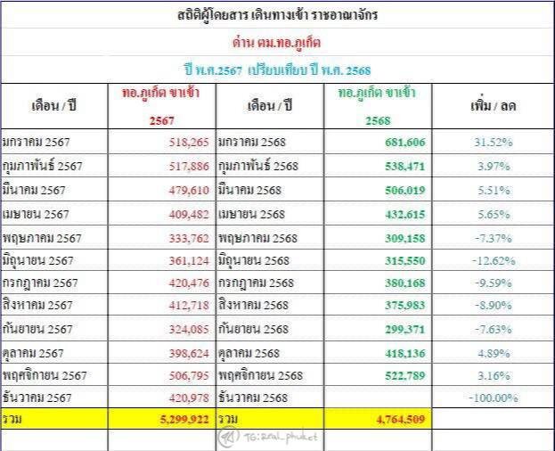 Статистика количества туристов, влетающих в Таиланд, через аэропорт Пхукета