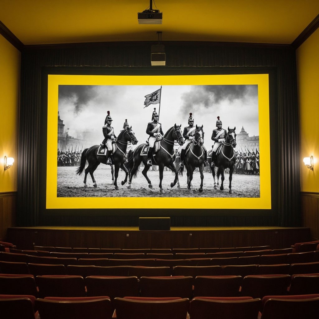 #минуткабезполитики Кинотеатр На раненых смертельно простынях, Чью белизну украл воришка-время, Кровавый бой идёт. И встав на стремя, Гусары в бой спешат, забыв про страх. Они кричат, но их не слышен звук, Гам проглотило жадно пианино… Тапёра пальцы, словно балерина, На клавишах выплясывают круг. Как серп траву, гусаров жнёт картечь, А пуля страстна, жадна, как любовник. С коня на землю падает полковник, Как падает платок с девичьих плеч. И он лежит среди своих друзей, И грязью пропитались эполеты… А в кассе все распроданы билеты, И полон зал взволнованных людей.