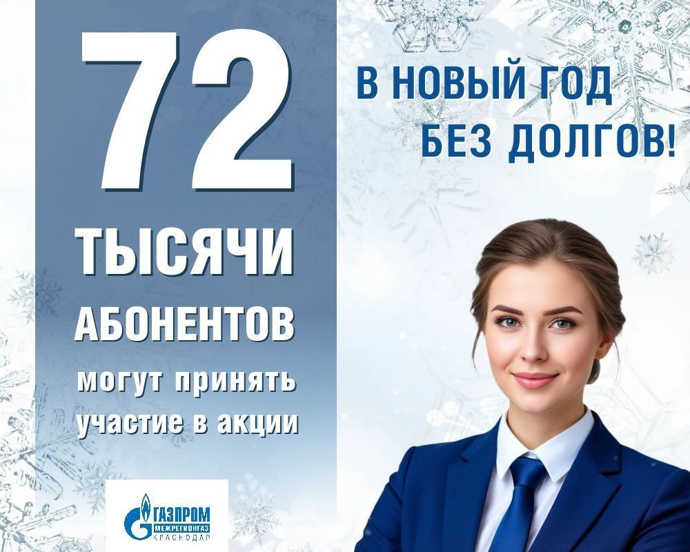 ⛽️ «Газпром межрегионгаз Краснодар» готов списать пени 72 000 должникам 💳 Ежегодная акция «В Новый год без долгов» продлится до конца года. Чтобы принять в ней участие необходимо до 31 декабря оплатить потребленный газ и перейти на электронные квитанции. ❄️ В прошлом году такой возможностью воспользовались более 20 тысяч абонентов. Их пени были списаны и общая сумма экономии семейных бюджетов составила более 13 млн рублей. 🏡 Это не просто цифры — это спокойные семьи, чистый финансовый старт и ещё один повод встречать Новый год с лёгкостью. 💸 Присоединяйтесь к акции и освободитесь от лишней финансовой нагрузки. Встречайте 2026 год уверенно и спокойно! ТГ / ВК / ОК / Подписывайтесь на СВОй "Рассвет" в канале MAX.