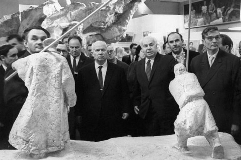 1 декабря 1962 года глава Советского правительства Никита Сергеевич Хрущёв посетил выставку «ХХХ лет МОСХа» в московском Манеже и устроил публичный разнос художникам-авангардистам. Всё это нашумевшее событие, как пьеса, распадается на несколько отдельных «актов». Одним из таких актов стал бурный спор с художником Эрнстом Неизвестным (1925—2016).