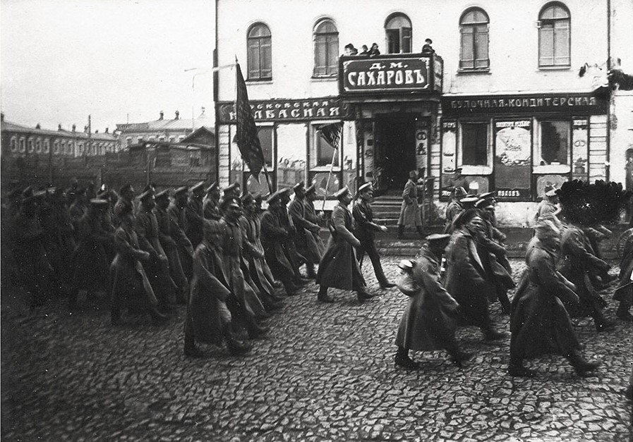 Виды на здание, где располагается наш офис, с разницей в 100 лет — Томск, проспект Ленина, 85. Сладостями и колбасами здесь больше не торгуют. Солдаты под окнами не маршируют. И балкона на втором этаже больше нет. © Pastvu | Яндекс Карты