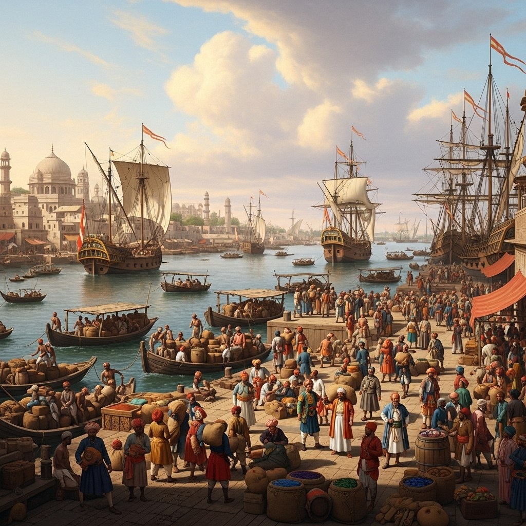 Торговля в империи Великих Моголов (XVI–XVIII вв.) была не просто частью экономики, а двигателем мировой торговли того времени. В период своего расцвета империя контролировала около 25% мирового ВВП, являясь крупнейшей экономикой мира, превосходящей Китай и всю Западную Европу вместе взятые.