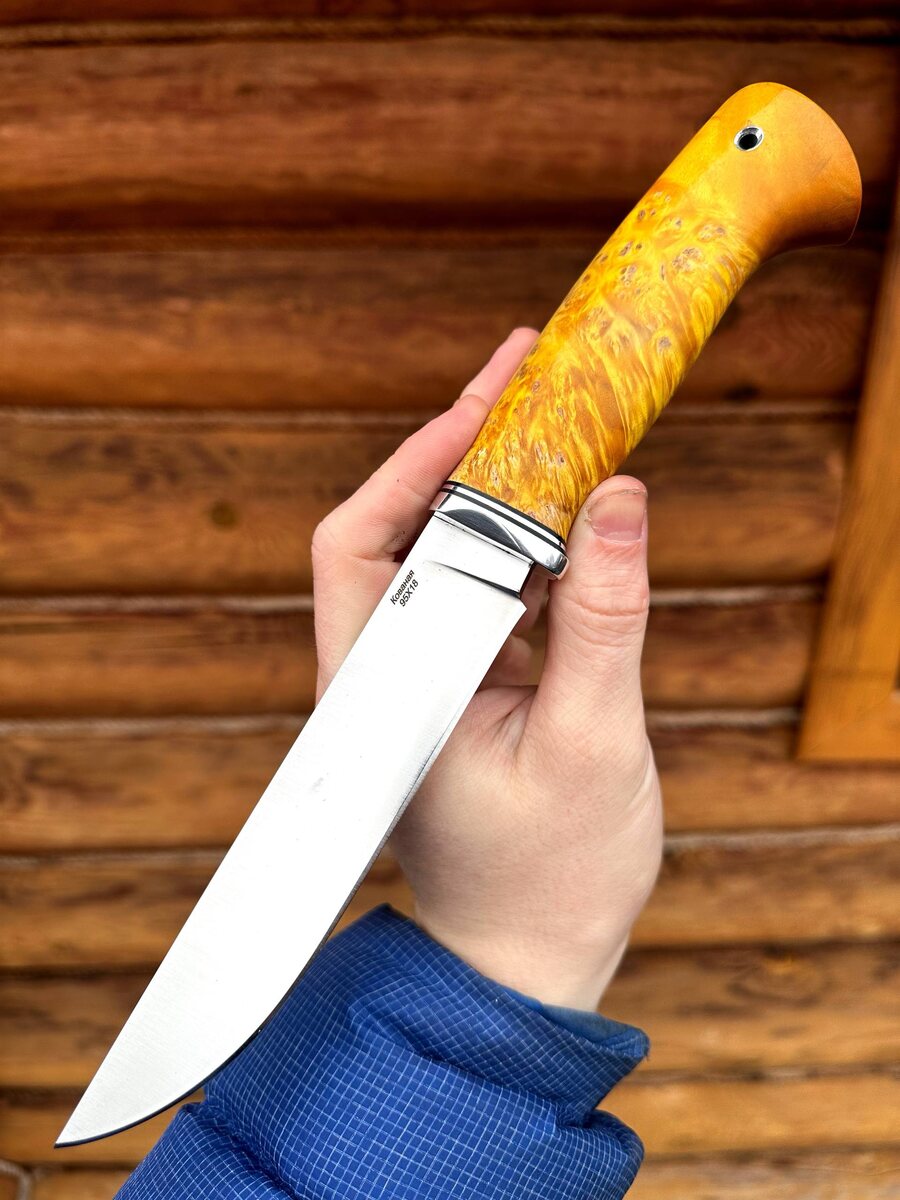 🔪 Рабочий универсальный нож «Засапожный» — в наличии! Ищете надёжный нож для работы, туризма или охоты? *Встречайте проверенную классику!* ⠀ ✨ Ключевые преимущества: - *Сталь 95х18 — отечественная нержавейка*: отлично держит заточку, прочная на излом, не боится влаги и коррозии. - *Рукоять из капа клена жёлтого* — эффектно смотрится, надёжно лежит в руке. - *Режет, как бритва*: нож уже профессионально заточен. - *Твёрдость клинка* — 58 HRC. ⠀ 🔥 Цена: 7 740 рублей В комплекте — ножны из натуральной кожи. Хочется больше? Сделаем: - *Формованные ножны* +8 000 ₽ - *Ножны из кайдекса* +3 000 ₽ ⠀ 🟢 *Отправляем по всей России.* ⠀ 📩 Для заказа — пишите: @Nazarklinokbot или WhatsApp/Viber: +7 910 134-38-31