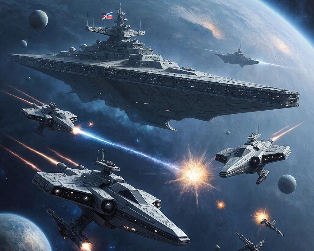 Космос стал ареной нового конфликта. Человечество столкнулось с древней цивилизацией, давно освоившей межзвездные путешествия. Эти существа называли себя Астралианами, и их цель была ясна — полное господство над всеми обитаемыми мирами. Глава 1: Начало Земляне впервые столкнулись с Астралианами около системы Альфа Центавра. Их корабли были огромны и оснащены передовыми технологиями, превосходящими земные разработки на столетия. Однако человечество не сдавалось. Под руководством генерала Ивана Сергеевича Громова, бывшего офицера космических войск, было создано новое оружие — гравитационные генераторы, способные создавать искусственные черные дыры. Эти устройства могли уничтожать целые флотилии противника, но их использование было рискованным. Любое неправильное применение могло привести к катастрофическим последствиям для всей планеты. Глава 2: Первый контакт Первая встреча произошла возле газового гиганта Юпитера. Флот Астралианов подошел близко к орбитальной станции Земли. Ген