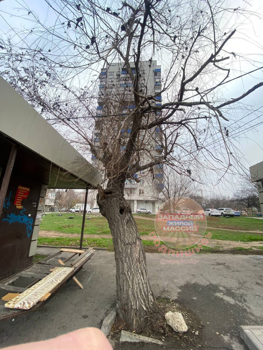В Ростове на Западном сухое дерево повисло на проводах 😮 Горожане сообщили об этом в соцсетях 3 декабря. Проблемное место находится у остановки на перекрестке улицы Малиновского и проспекта Стачки. Местные жители говорят, что нахождение у остановочного пункта «Проспект Стачки» давно представляет риск для прохожих. - Ответственные лица не замечают проблему уже который месяц. В любой момент дерево может порвать провода и рухнуть кому-нибудь на голову, - пишет ростовчанин. По снятым кадрам с места видно, что ствол дерева успел накрениться. Разросшиеся ветки легли на крышу остановки и натянули провода. С приходом зимы повышается угроза падения дерева. Сильные порывы ветра или осадки в виде снега могут сломать сухую кору. Даже если дерево переживет холода, в теплое время от него не будет никакой пользы. Под ветками без листьев невозможно будет спрятаться от солнца. Жители надеются, что огласка этой проблемы в соцсетях ускорит ее решение.