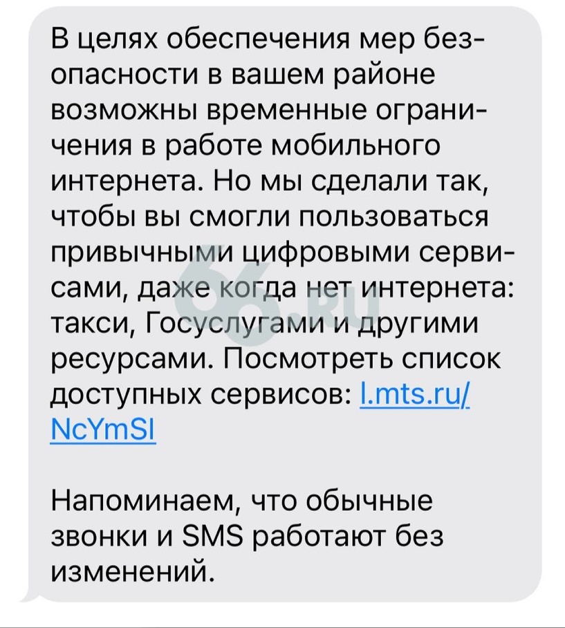SMS о возможных ограничениях получили абоненты МТС. Другие операторы пока подобные уведомления не отправляли. При этом глобальных сбоев в работе МТС нет, судя по сайту DownDetector. Пользователи не жалуются на перебои в работе интернета. Это уже четвертый раз за месяц, когда оператор предупреждает об отключениях. Последние сообщения были 12, 16 и 27 ноября.