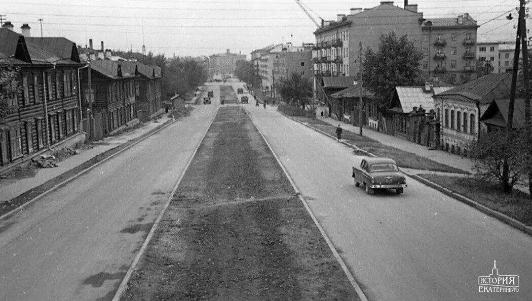 Свердловск. Улица Московская Фото 1961 год. Белый особнячок справа - это ярко-белый дом на этом фото: https://t.me/OldFotoEkb/2 Подпишитесь на канал — ссылка ниже: https://dzen.ru/id/678216fd53ff3c46eec64fad