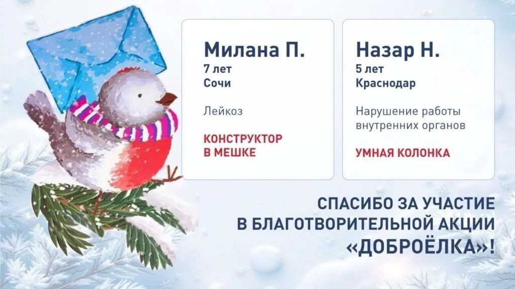 Об участии в доброй предновогодней инициативе глава региона сообщил в своем телеграм-канале. По его словам, он принял участие в акции фонда «Край добра», чтобы лично исполнить мечты детей, которые ежедневно борются с серьезными диагнозами и особенно нуждаются во внимании и поддержке. Это детки с тяжелыми заболеваниями, которые каждый день борются за жизнь, поэтому им так необходимы наша поддержка и внимание, — написал Кондратьев. Принять участие в акции может каждый желающий. На сайте проекта дети оставляют свои мечты — простые и трогательные. Так, Назар из Краснодара мечтал об умной колонке, Милана — о наборе конструктора, а Николай из Сочи — о радиоуправляемом внедорожнике. Выбрать подарок можно онлайн, а доставят его волонтеры. Это делает участие особенно удобным и доступным. Организаторы напоминают, что новогодняя пора — время чудес, и именно сейчас у каждого есть возможность подарить ребенку праздник. Акция «Доброелка» проходит ежегодно и уже стала традиционной для края. Ранее «К