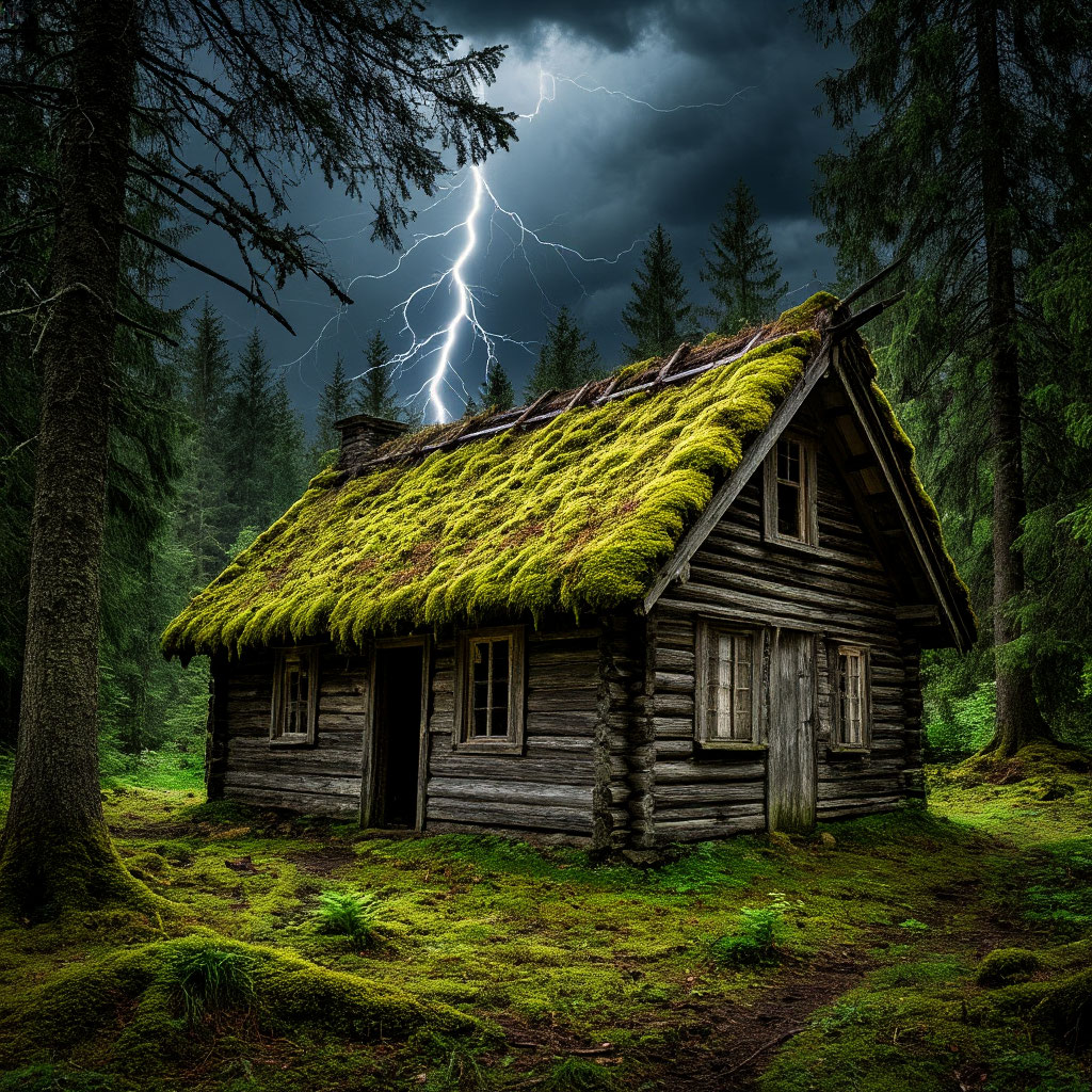 Стены когда-то были сбиты с дерева, но сейчас уже совсем позеленели от мха и плесени; окна закрывало не стекло, шкуры каких-то животных, уже в нескольких местах прогнившие. Вокруг домика буйствовала природа - так, словно хотела полностью его поглотить и уничтожить.