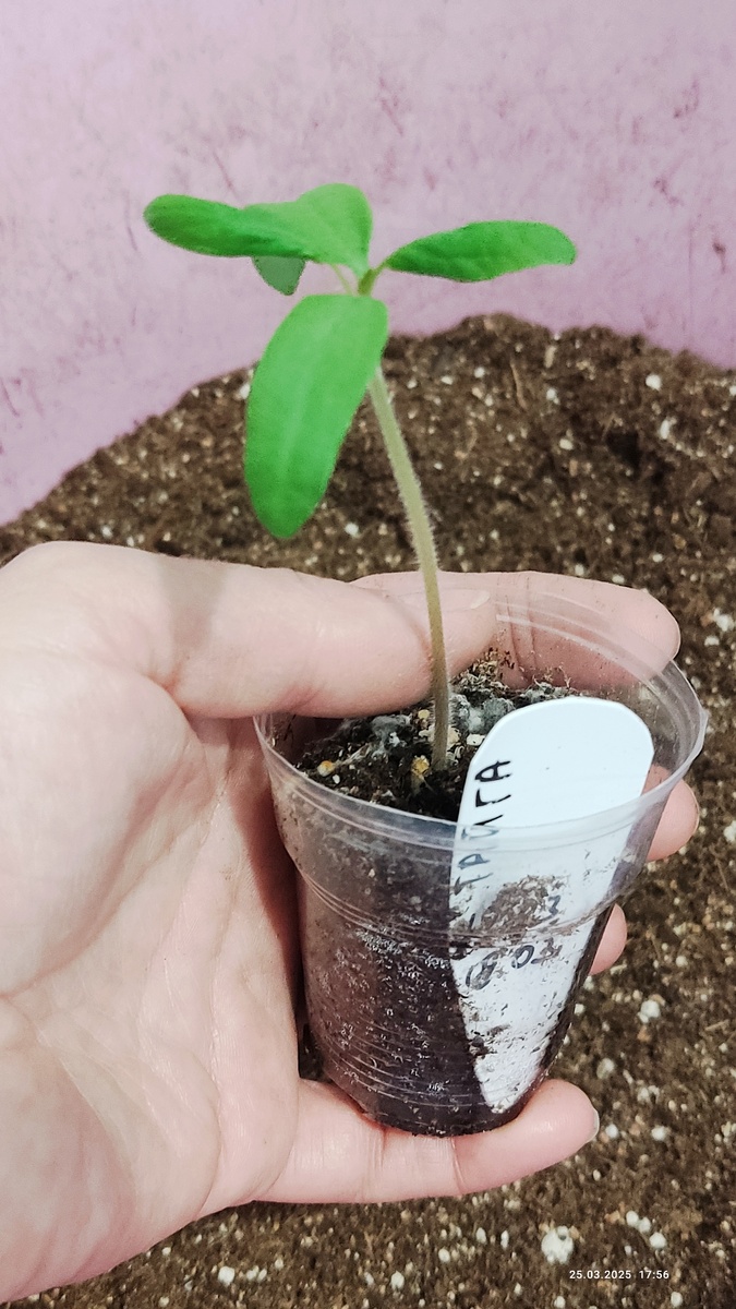 Самый настрадавшийся у меня томат в 2025 году )) Уже на этапе рассады с ним были странности - из двух посаженных семян, один росток был с тремя семядольками. Это никак не отразилось на его дальнейшем развитии. Оба саженца развивались хорошо, если бы не мои очумелые ручки. Чего только ему от меня не досталось - роняла, ломала, засушивала и заливала. Непонятно как, но он дожил всё-таки до высадки в теплицу. Но и там ему снова досталось - сломала его при высадке. Вообще впервые так по отношении к одному растению. Ну всякое бывало, но чтоб вот всё досталось только одному сорту, такое первый раз. В общем на место сломанного посадила запасной и он стал расти и развиваться на уровне со всеми. 2 июня появилась первая цветочная кисть. Точнее это была уже вторая кисточка, первая сбросила все цветы. Сам куст, хоть и имеет крупные картофельные листы - компактный. Все листики поникающие. Плодоносить он начал уже в конце лета. Если честно не знаю почему так долго. Или та июньская кисточка тоже