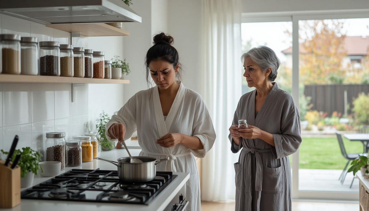 Это был третий раз за неделю. Я готовила ужин, а Людмила Ивановна, которая приехала погостить "на пару недель" (уже второй месяц шёл), обязательно находила момент незаметно подкрасться к плите и "довести до ума". Борщ, плов, даже обычную яичницу — всё требовало её экспертной корректировки.