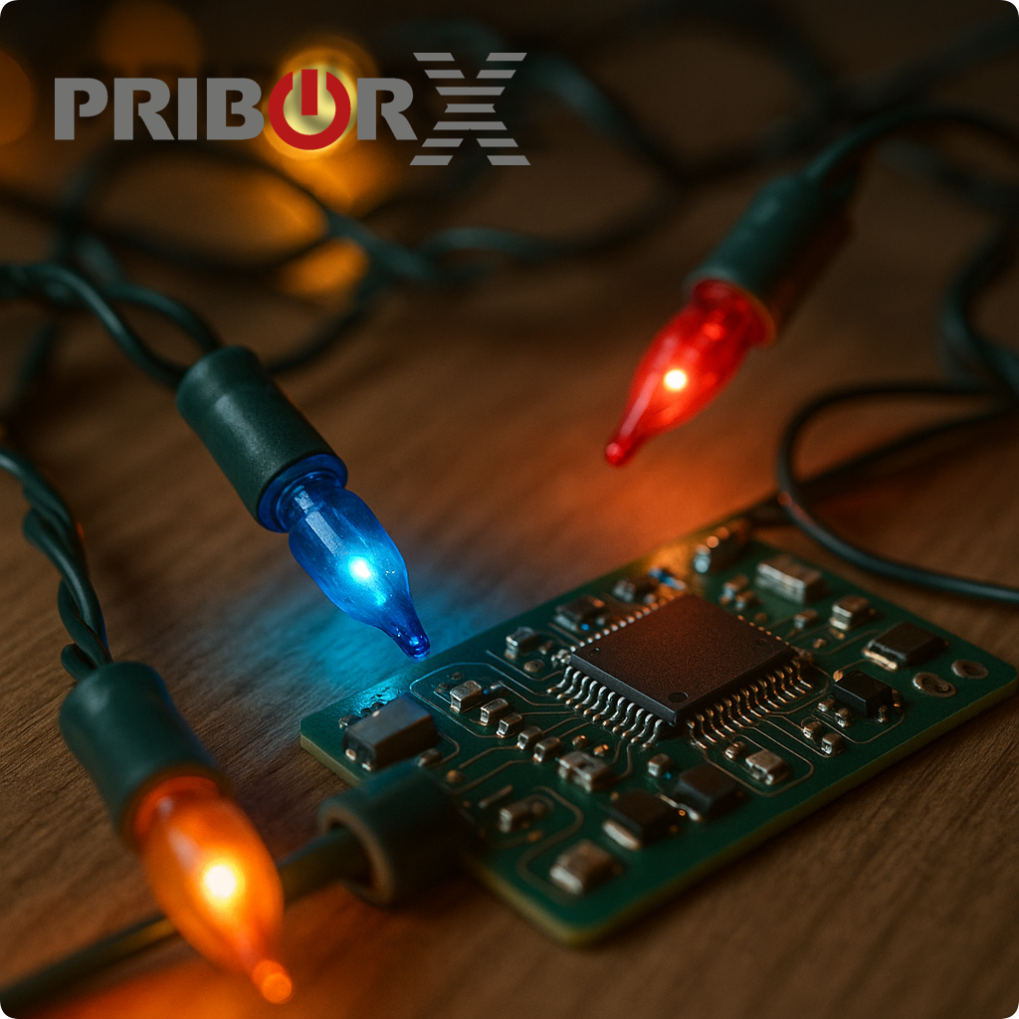 Контроллер работает по запрограммированному алгоритму, как мини-компьютер с памятью и тактированием. 💡 Факт: микроконтроллеры в гирляндах часто 8-битные - как в первых игровых приставках. LED-лампы не любят скачков напряжения, а в сети они случаются постоянно (особенно зимой).