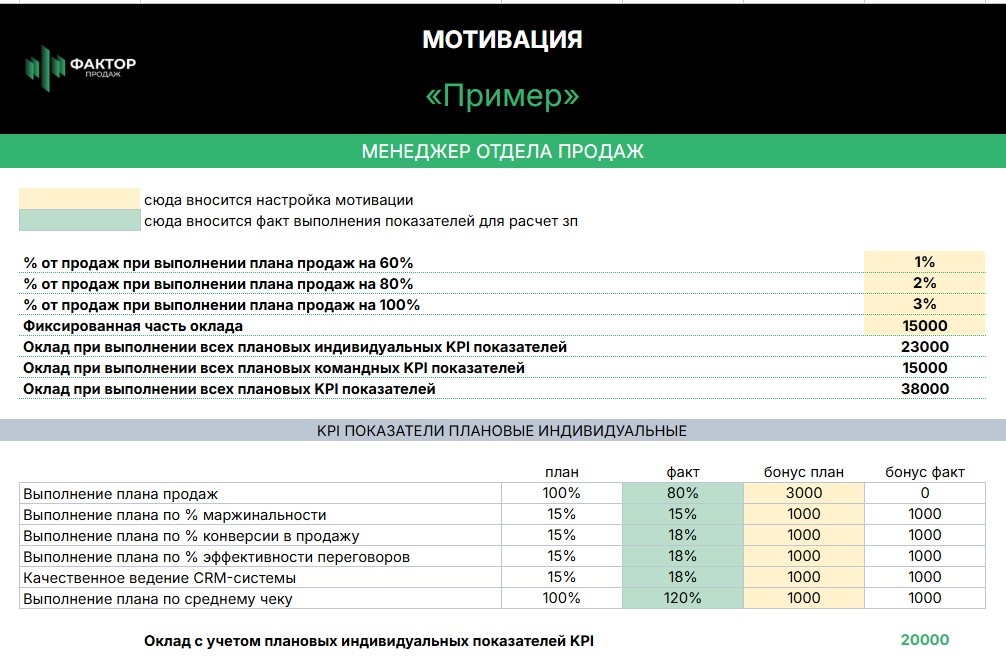 Для «охотников» коэффициент может зависеть от количества звонков и оформленных заявок, для «сопровождающих» — от удержания клиентов и повторных продаж.