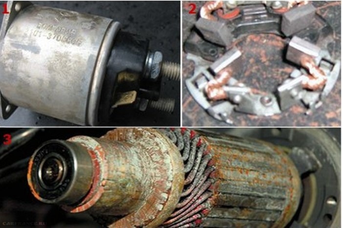 При повороте ключа или нажатии кнопки «Start» слышно щелчок, но двигатель не крутится. Возможные причины: слабый контакт на клеммах износ или залипание втягивающего реле недостаточный ток (часто из-за АКБ) износ щёток Если щелчок есть, но стартер не крутит - проблема с механикой или контактами. ⚡ 2. Стартер крутит медленно Если стартер вращает мотор «вяло», медленно, как будто с усилием - это признак: изношенных щёток загрязнённых или подгоревших контактов износа втулок или подшипников слабого аккумулятора Если аккумулятор исправен - проблем