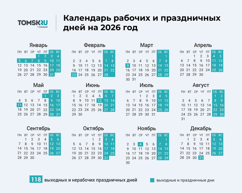 Публикуем производственный календарь на следующий год, который утвердило правительство Для россиян, работающих в рамках пятидневной рабочей недели, новогодние праздники в 2026 году продлятся целых 12 дней. Продолжительный отдых станет возможным благодаря традиционным переносам выходных дней, которые совпадают с праздничными датами. Официальный отдых начнется уже в среду, 31 декабря 2025 года. Этот день станет выходным за счет переноса с 5 января — в уходящем году он выпал на воскресенье. Далее последуют новогодние каникулы с 1 по 6 января и праздник Рождества Христова 7 января. Поскольку 3 января в 2026 году приходится на субботу, этот выходной перенесут на пятницу, 9 января. После этого отдых продолжится в обычные субботу и воскресенье, 10 и 11 января. Таким образом, полный список нерабочих дней на Новый год выглядит так: 31 декабря, а также 1, 2, 3, 4, 5, 6, 7, 8, 9, 10 и 11 января. Новогодняя ночь с 31 декабря на 1 января окажется в середине недели, а первый день 2026 года придется