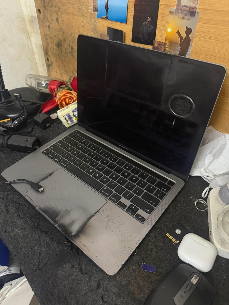 Новый день и очередной сгоревший Макбук. Деталей пока не очень много. Как рассказывает владелец на форуме Reddit, «он просто стоял на столе» и вдруг натурально взорвался. Обратите внимание, как сажа пробивается изнутри по периметру тачпада — судя по всему, источником воспламенения является одна из центральных банок аккумулятора. Скорее всего, снова было вздутие батареи, контакт и далее по списку. Поэтому еще раз напомним про важность периодической профилактики своих Макбуков. У нас в декабре это бесплатно. Подробности по ссылке. Пожалуйста, не игнорируйте это. @fixed