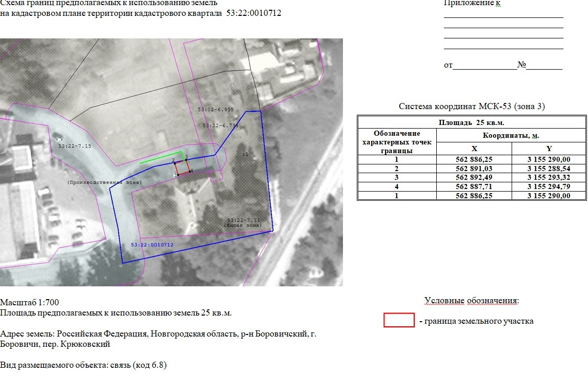⚡ В адрес Администрации муниципального района поступило заявление ООО «Балтийские Высоты» о принятии решения об использовании земель площадью 25 кв.м по адресу: Новгородская область, г. Боровичи, пер. Крюковский, для размещения объекта – антенно-мачтовое сооружение (высотой 40 м). Предложения (возражения), особые мнения граждан принимаются Администрацией муниципального района ☎ 8 (81664) 91-273, 91-211 (kumizem@boradmin.ru).